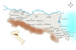 Bologna, capoluogo di regione, è una città di origine etrusca attraversata da portici che fiancheggiano le vie e chiamata anche città rossa per via del colore rossastro delle torri e delle case. Tra i principali monumenti di Bologna si ricordano la torre degli Asinelli e la Torre Garisenda, la Basilica di San Petronio e il palazzo del Podestà. Bologna è un importantissimo snodo ferroviario e la sua economia è retta da una robusta industria.